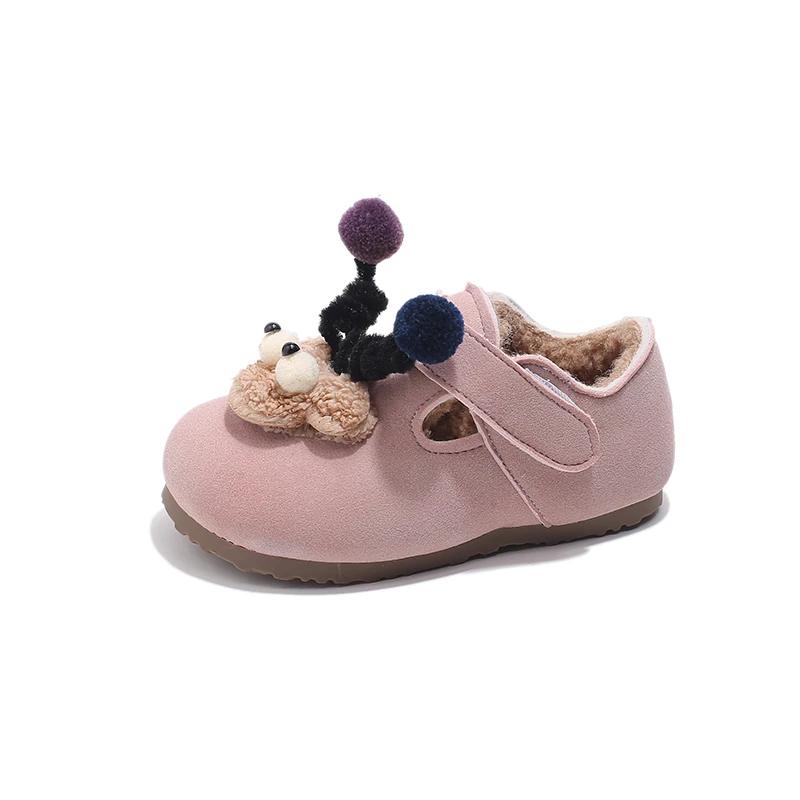2024 Детские плюшевые балетки для девочек, зимняя новая мода в корейском стиле, мягкие, нескользящие, универсальные, шикарные, сохраняющие тепло кожаные туфли 23 розовый