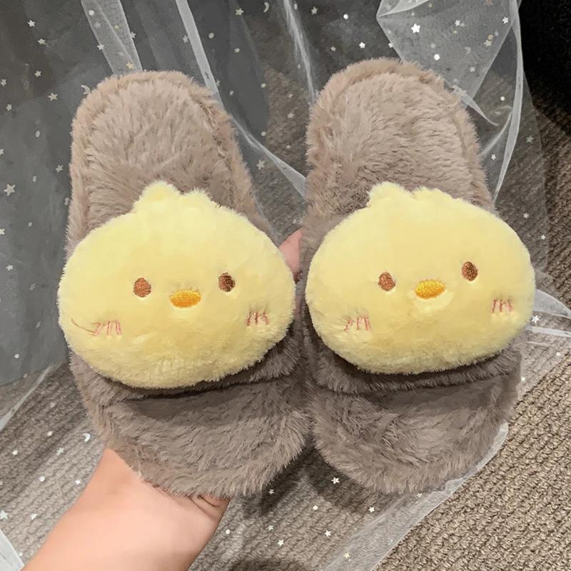 2024 Детские плюшевые тапочки для девочек Зимние новые модные милые животные в корейском стиле с открытым носком, нескользящие, универсальные, шикарные туфли 26-27 хаки