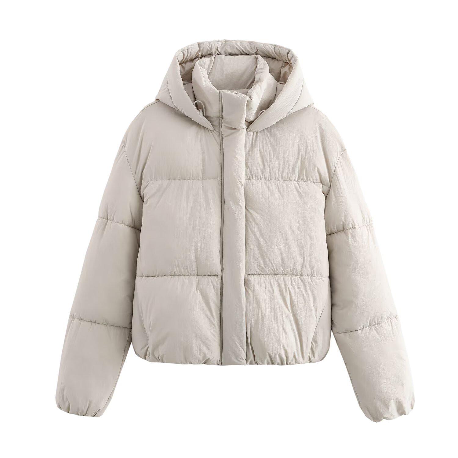 2024 Европейская и американская женская куртка с капюшоном и хлопковой подкладкой - Осенне-зимний уличный стиль S бежевый