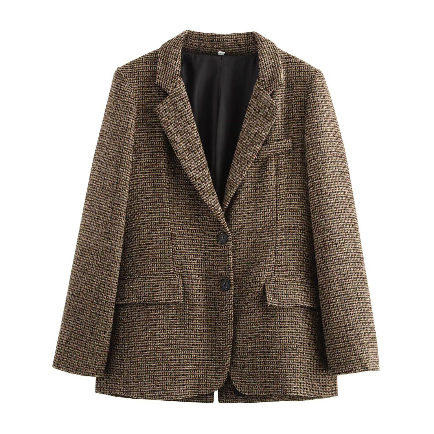2024 Европейский и американский стиль Ins повседневный клетчатый пиджак XS