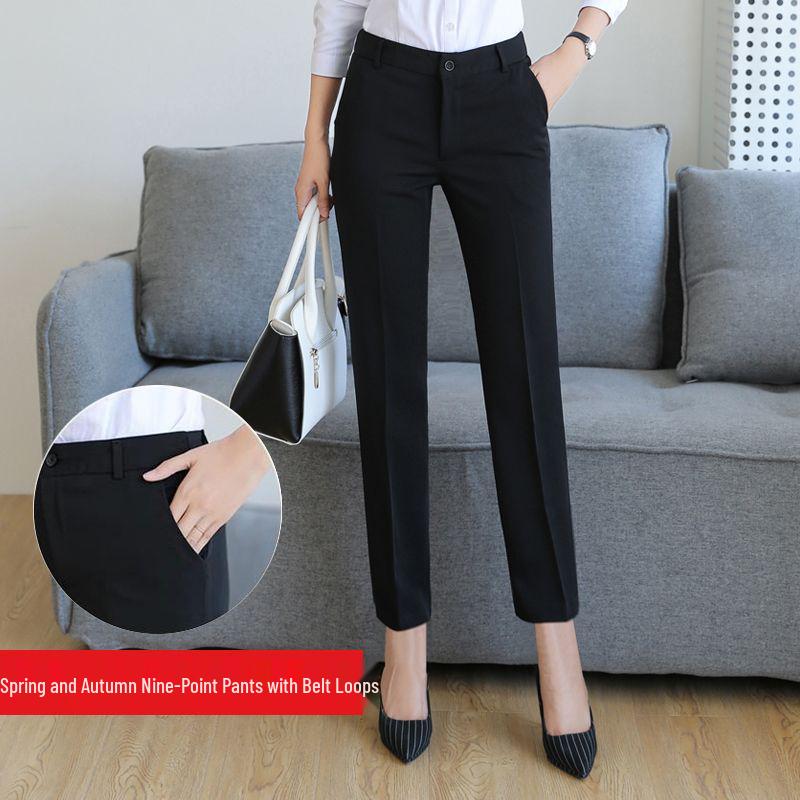 2024 Женские приталенные черные брюки от костюма: Весна/Осень Прямые Драпирующиеся Профессиональная Одежда M (89-98 lbs)