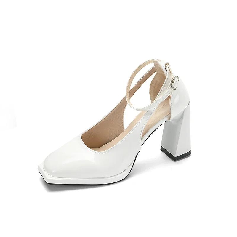 2024 Классические туфли Мэри Джейн Женские туфли Сексуальные туфли на высоком каблуке Квадратный носок Высокие каблуки Женские босоножки Вечерние свадебные туфли Zapatos 40 белый