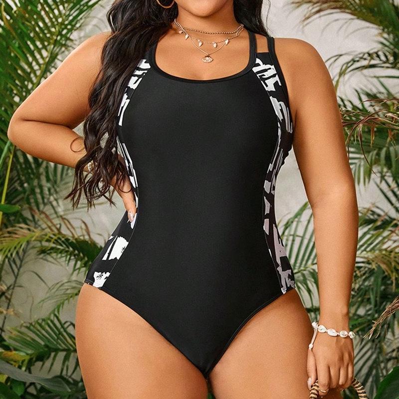 2024 Купальник слитный большого размера однотонный утягивающий - Стильная пляжная одежда для женщин с контролем живота 4XL чёрный