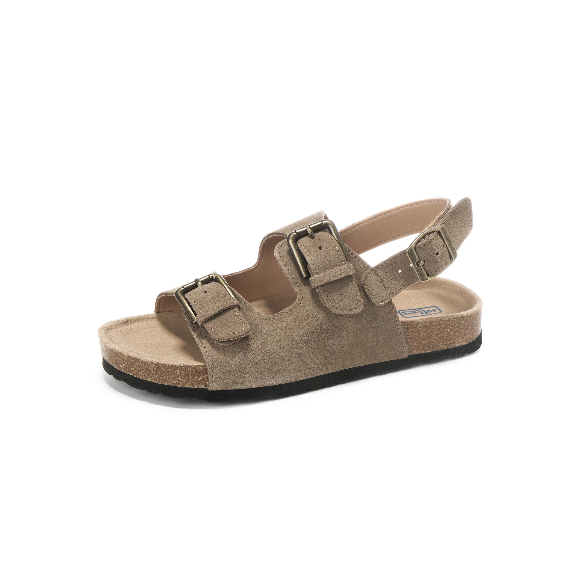 2024 Летние женские сандалии из пробки с двумя пряжками из коровьей замши, сандалии на плоской подошве для женщин, модные садовые туфли-мюли в стиле ретро 41 зеленые хаки