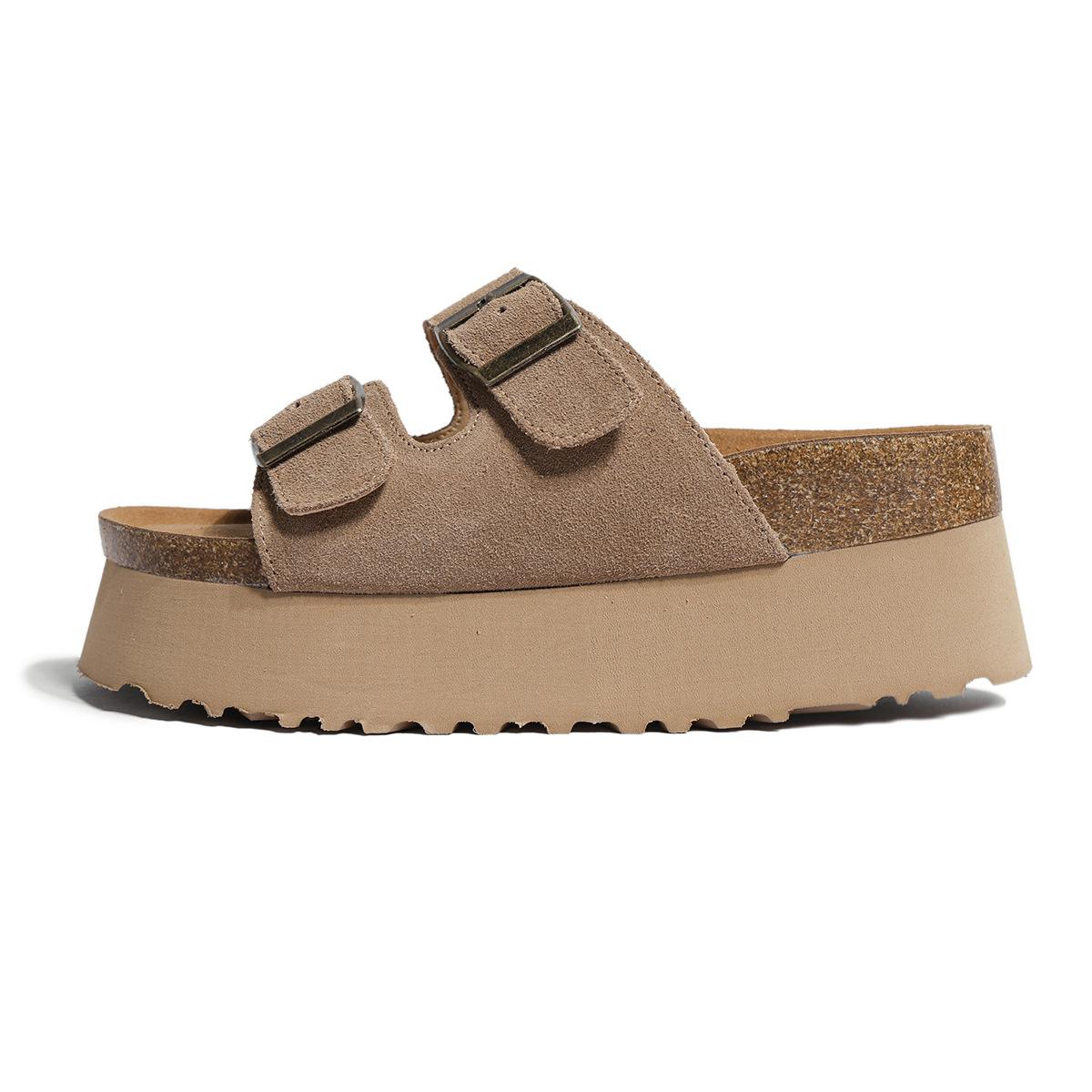 2024 Летние женские тапочки на платформе из пробки из коровьей замши, сандалии на плоской подошве с двумя пряжками для женщин, ретро-садовые сандалии-мулы Clog Slides 39 верблюд