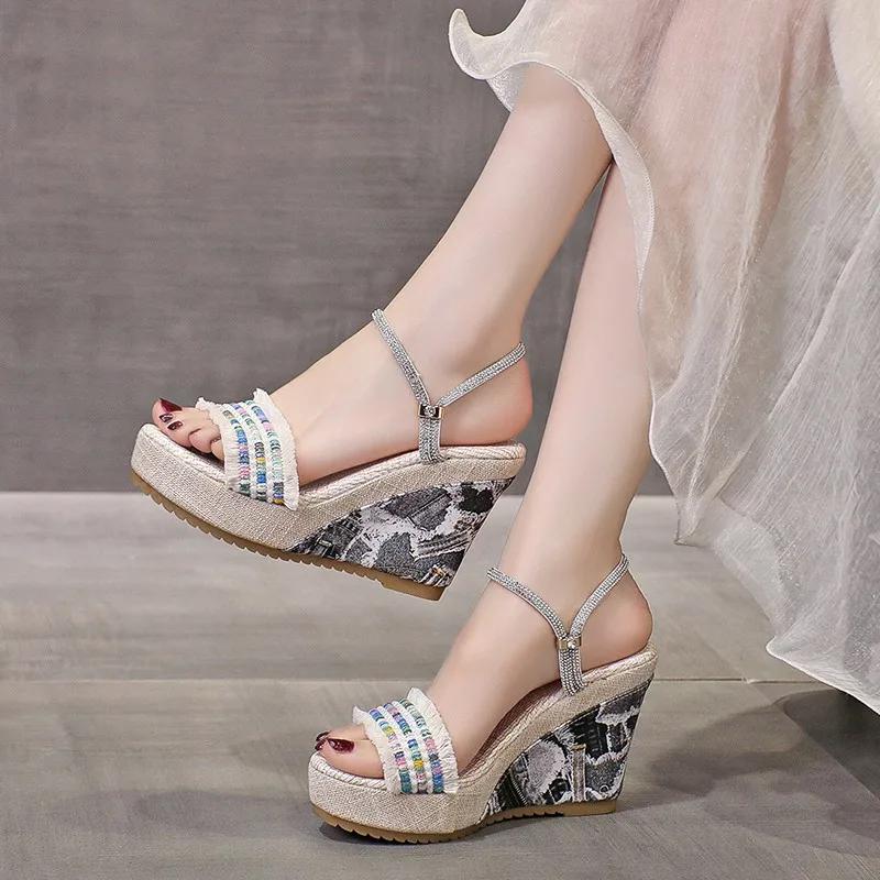 2024 Летняя высококачественная женская обувь, модные цветные тапочки с открытым носком, женские тапочки большого размера на высоком каблуке 42 бежевый