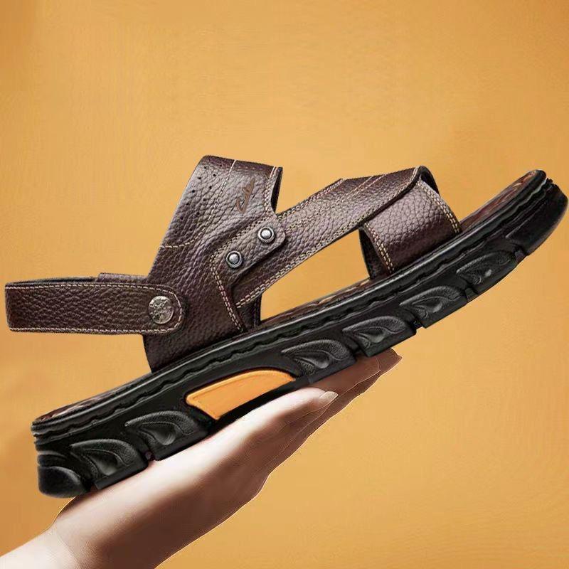 2024 Летняя обувь Мужские сандалии Натуральная кожа Плоская нескользящая праздничная мужская обувь Мягкая удобная черная коричневая D076 6.5 коричневый