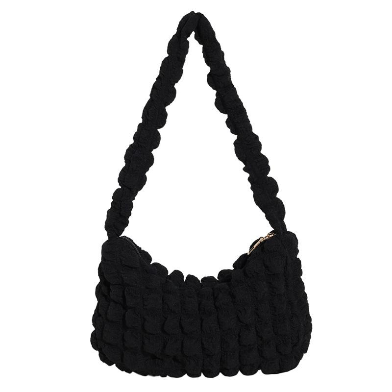 2024 Маленькая свежая пузырчатая сумка женская мягкая складная сумка подмышкой для девочек модный тренд корейская версия простая сумка через плечо чёрный
