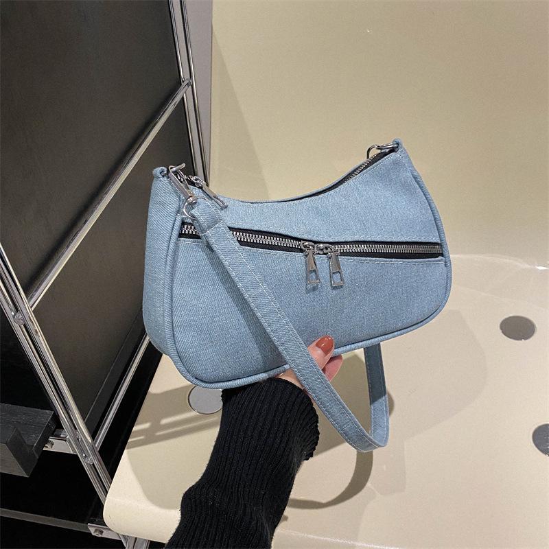 2024 Модная корейская джинсовая женская сумка на одно плечо в мотоциклетном стиле чёрный