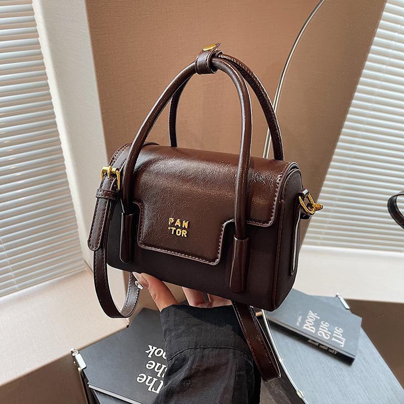 2024 Модная маленькая квадратная сумка: Высококачественный нишевый дизайн, ретро-сумка через плечо для поездок на работу коричневый