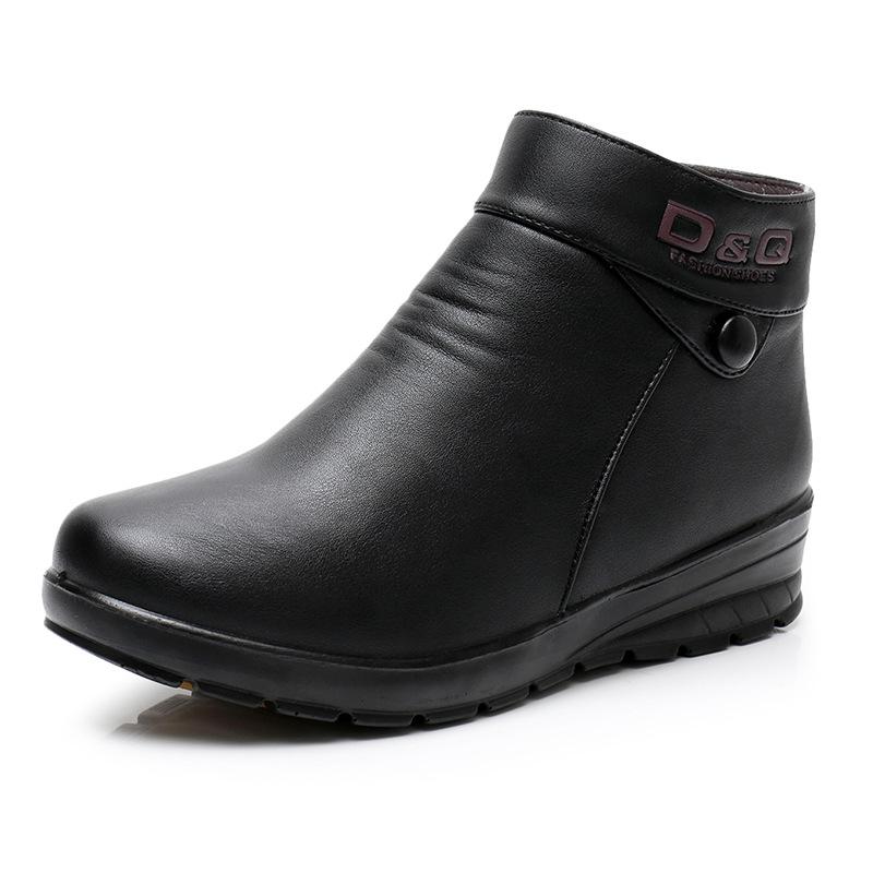 2024 Модные зимние ботинки женские из натуральной кожи теплые ботинки для мам толстые плюшевые теплые зимние ботинки женские водонепроницаемые нескользящие ботинки 41 чёрный