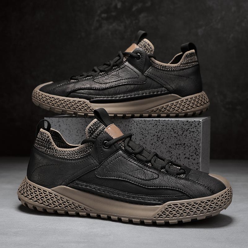 2024 Мужские классические черные/хаки кожаные кроссовки повседневные мягкие кожаные туфли на шнуровке Мужская модная обувь для ходьбы на открытом воздухе Мужские кроссовки 44 чёрный