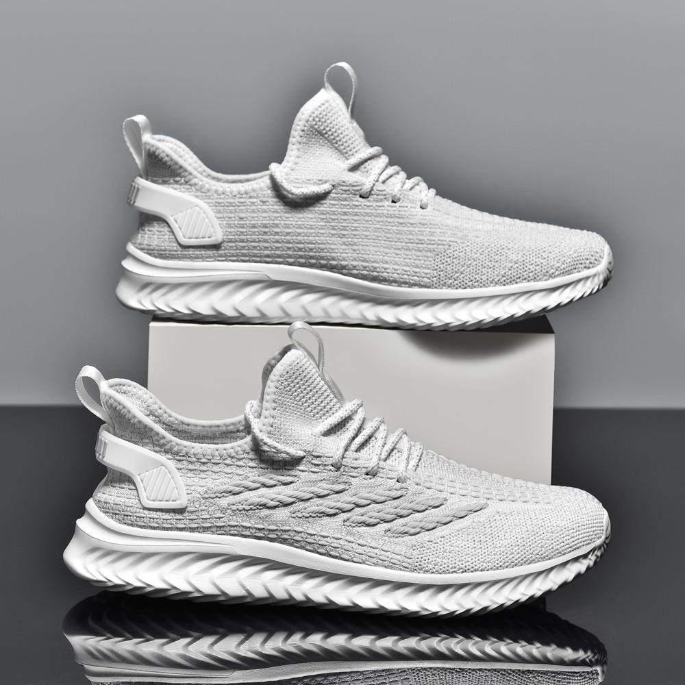 2024 Мужские кроссовки, повседневная обувь для активного отдыха, дышащая сетка, удобная, большого размера, модная, нескользящая, вулканизированная, тканая, для бега 46 белый