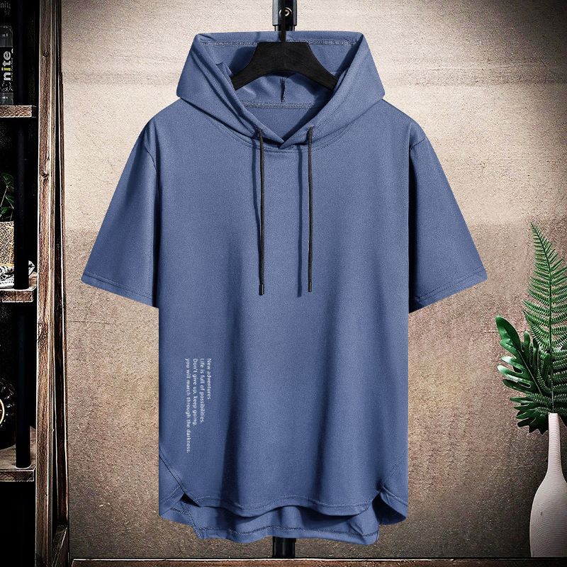 2024 Мужские летние толстовки с капюшоном Футболки с коротким рукавом Однотонные свободные свитера с капюшоном на шнурке Топы Базовые футболки для повседневной носки для мужчин L