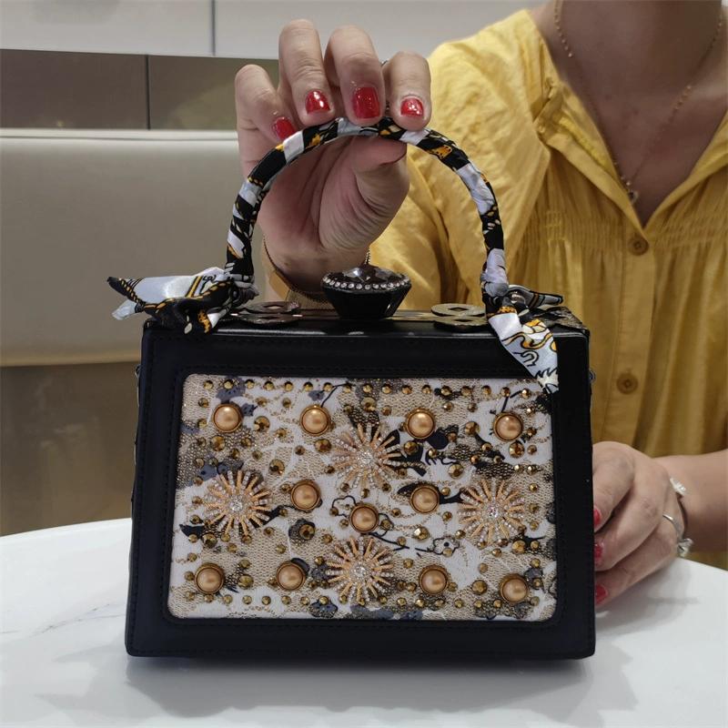 2024 Новая модная легкая роскошная кожаная сумка в западном стиле, маленькая квадратная сумка с бриллиантовой вставкой