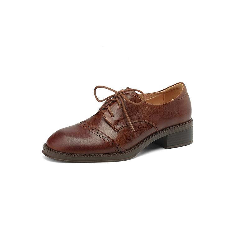 2024 Новые винтажные женские туфли-лодочки весна-лето с круглым носком на толстом каблуке для зрелых женщин из натуральной кожи со шнуровкой для офиса 36 коричневый