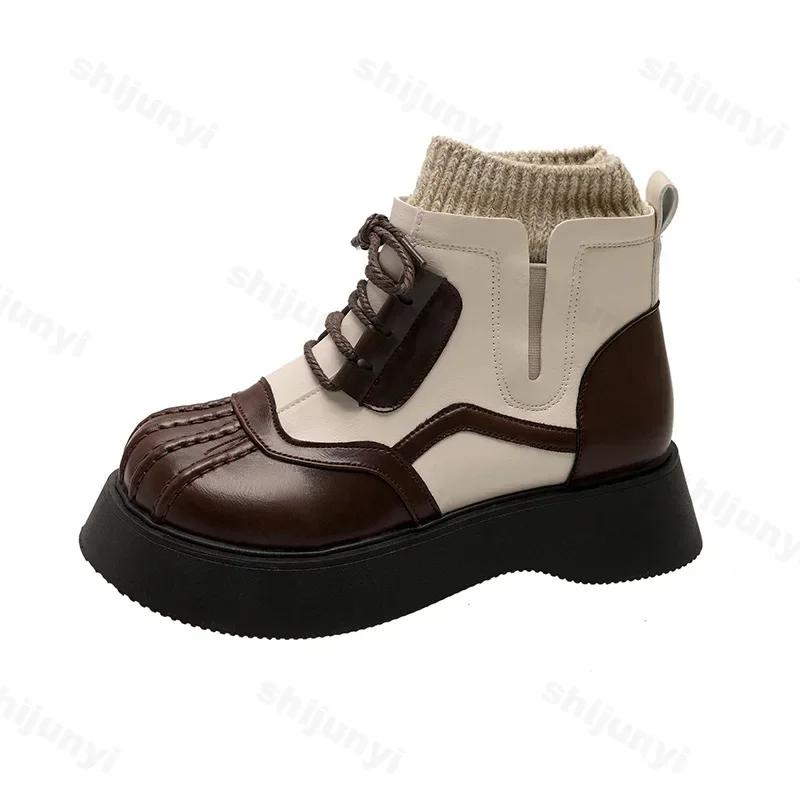 2024 Новые женские зимние короткие ботинки «Челси» в британском стиле, женские дизайнерские ботильоны с круглым носком, ботильоны из искусственной кожи на платформе 38 коричневый
