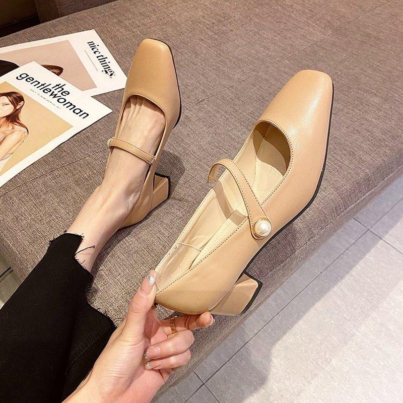 2024 Новые лакированные туфли Мэри Джейн с квадратным носком, темпераментные туфли на толстом каблуке с неглубоким носком, весенние туфли на высоком каблуке, женские 40 абрикосовый