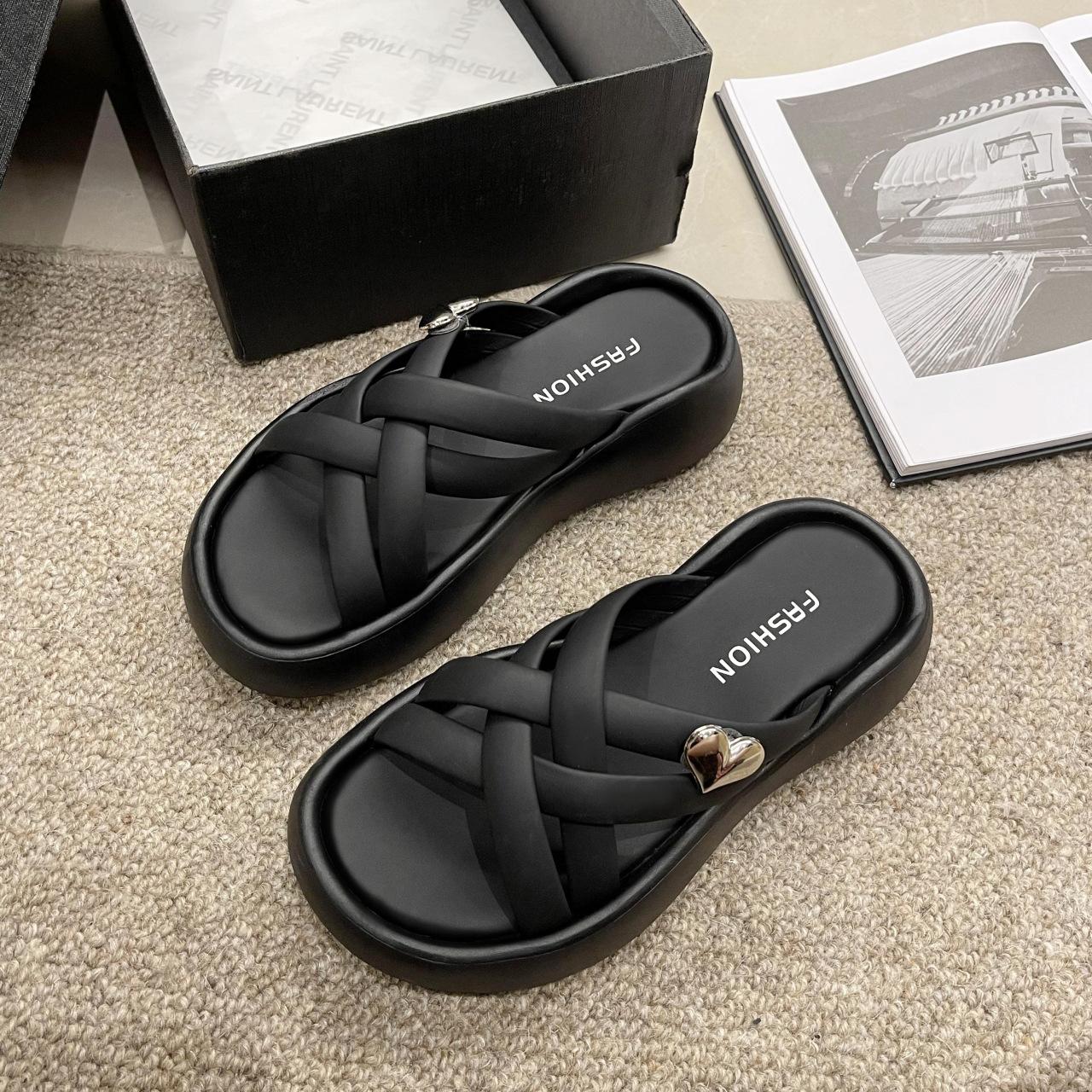 2024 Новые толстые подошвы для ног, повседневные французские тапочки премиум-класса для лета, женская обувь, верхняя одежда 40 чёрный