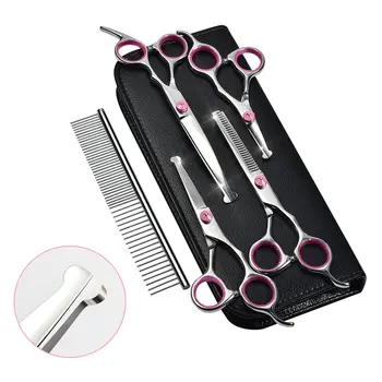 6/7pcs Pet Hair Scissors Hairdressing Cutting Supplies Shears Dog Comb Haircut Machine Cat Stainless Steel Beauty Set Groom Suit