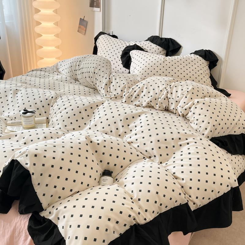 2024 Новый корейский свежий кремовый комплект из четырех предметов Fengyun Duo Cotton Edge с черно-белой печатью Cover 150 x 200