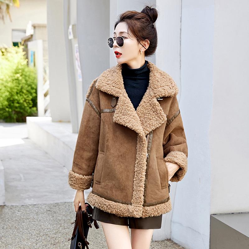 2024 Осень/Зима Женская Утепленная Куртка из Овчины и Оленьей Кожи - Z5152 L (115-135 jin) кофейный
