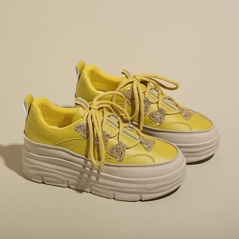 2024 Осень Новые Женские Дышащие Белые Туфли Корейское Издание Универсальные С Внутренней Платформой Спортивные Повседневные Кеды 40 жёлтый