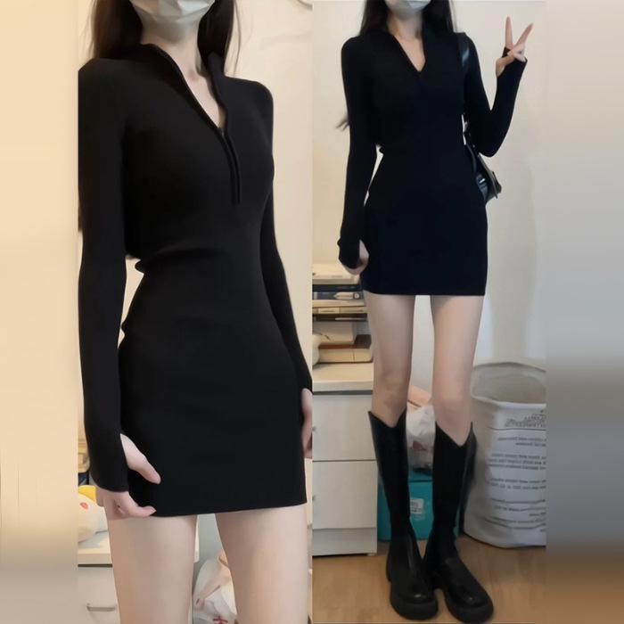 2024 Ранняя осень сексуальное черное облегающее мини-платье с длинными рукавами для женщин Small чёрный