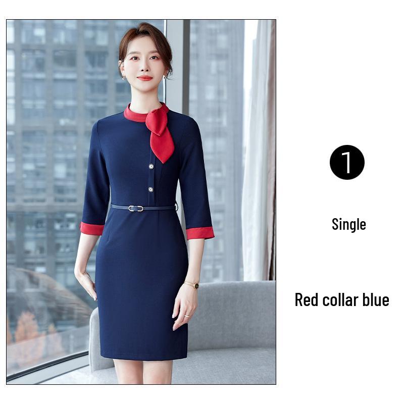 2024 Элегантная профессиональная рабочая одежда для весны и осени: Платье в стиле богини для продаж, работы на ресепшене, салона красоты и бортпроводника 3XL