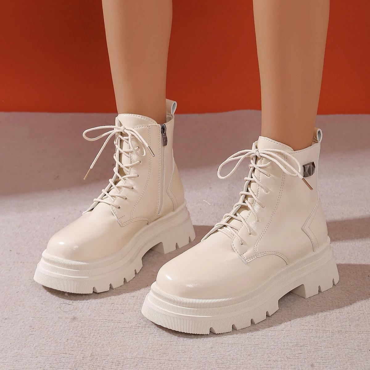 2024 бежево-черные новые женские ботильоны осень-зима на платформе со шнуровкой женские панк-ботинки на толстой подошве армейские ботинки женские Mujer 35