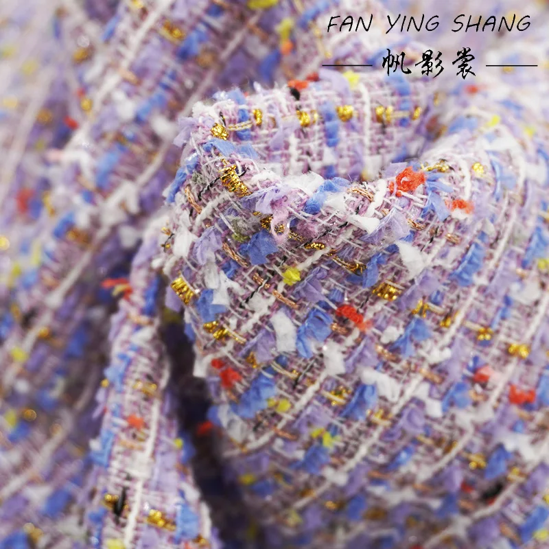2024, весенняя фиолетовая клетчатая милая твидовая ткань для пальто, юбки своими руками