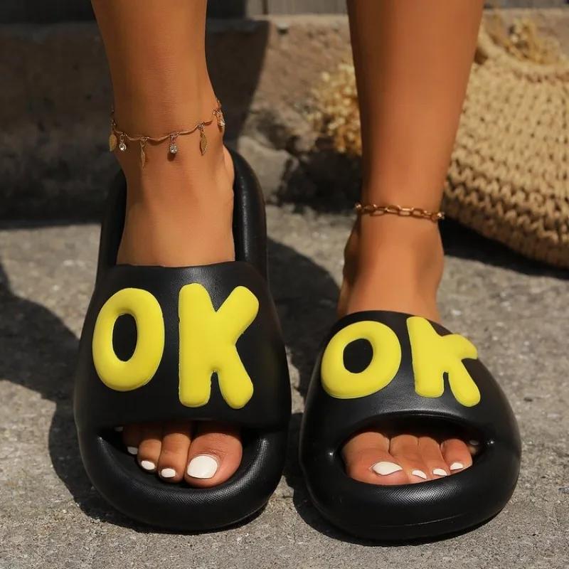 2024 женские тапочки с буквенным принтом, пляжные шлепанцы, однотонные мужские туфли с толстой подошвой для ванной комнаты, нескользящие летние сандалии для пар 40-41 чёрный