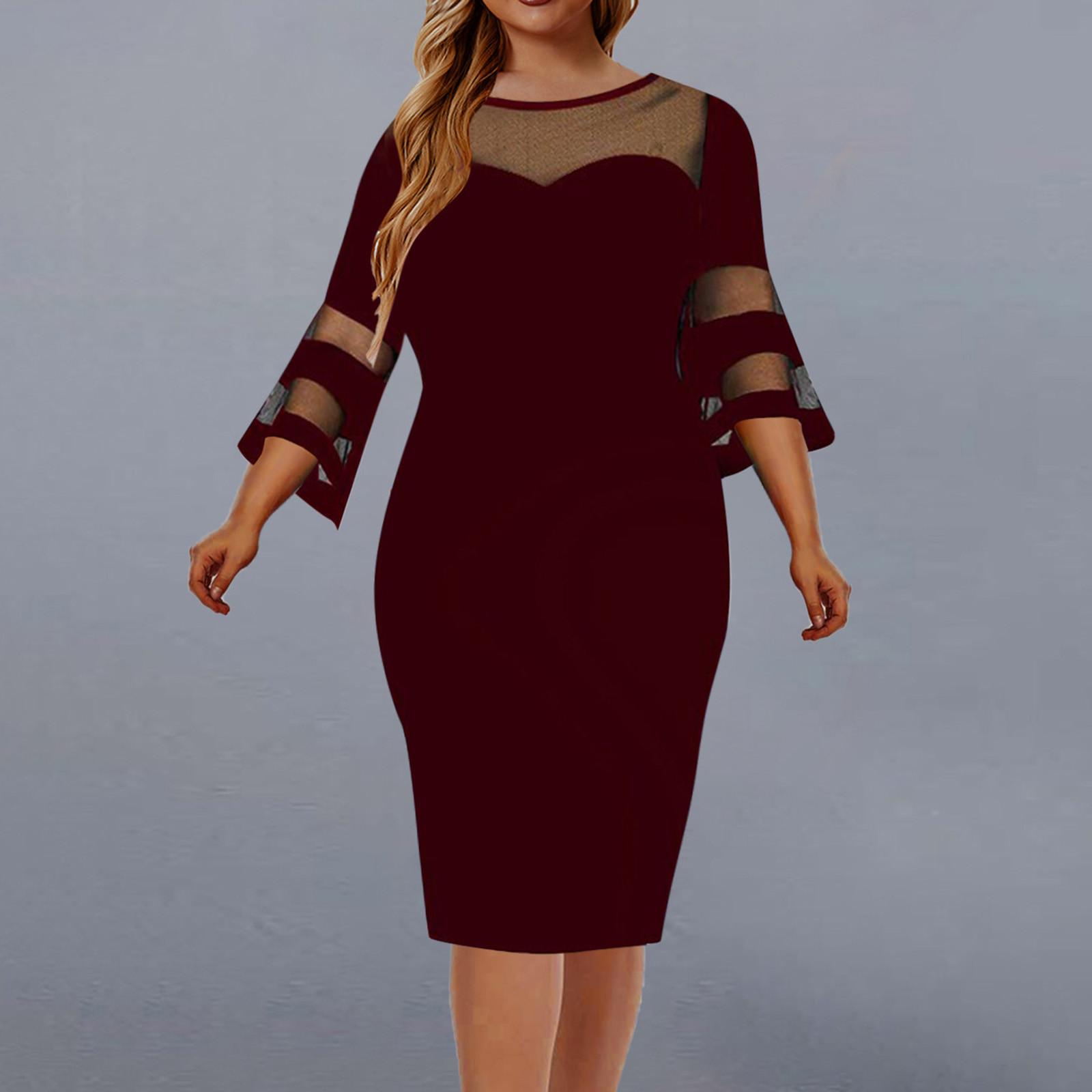 2024 женское сетчатое марлевое лоскутное платье большого размера в комплекте с юбкой на бедрах XXXXXL винный