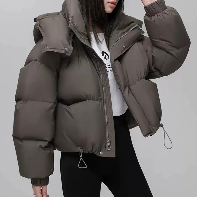 2024 зимнее женское белое утиное пуховое пальто в корейском стиле с длинным рукавом укороченная пуховая одежда оптом для женской моды M серый