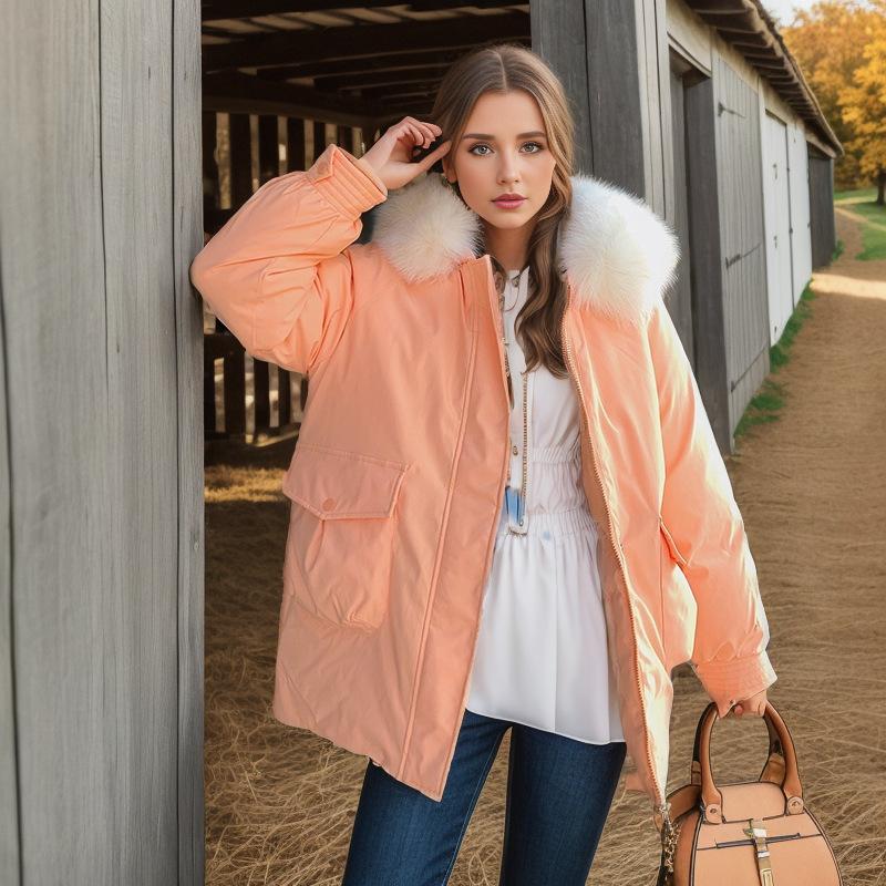 2024 зимняя женская парка верхняя женская искусственный мех воротник утолщенная теплая хлопковая куртка женская хлопковая короткая парка куртка XXL оранжевый