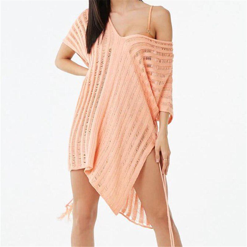 2024 крючком белое трикотажное пляжное платье туника длинное парео бикини накидки накидки на купальники One Size розовый