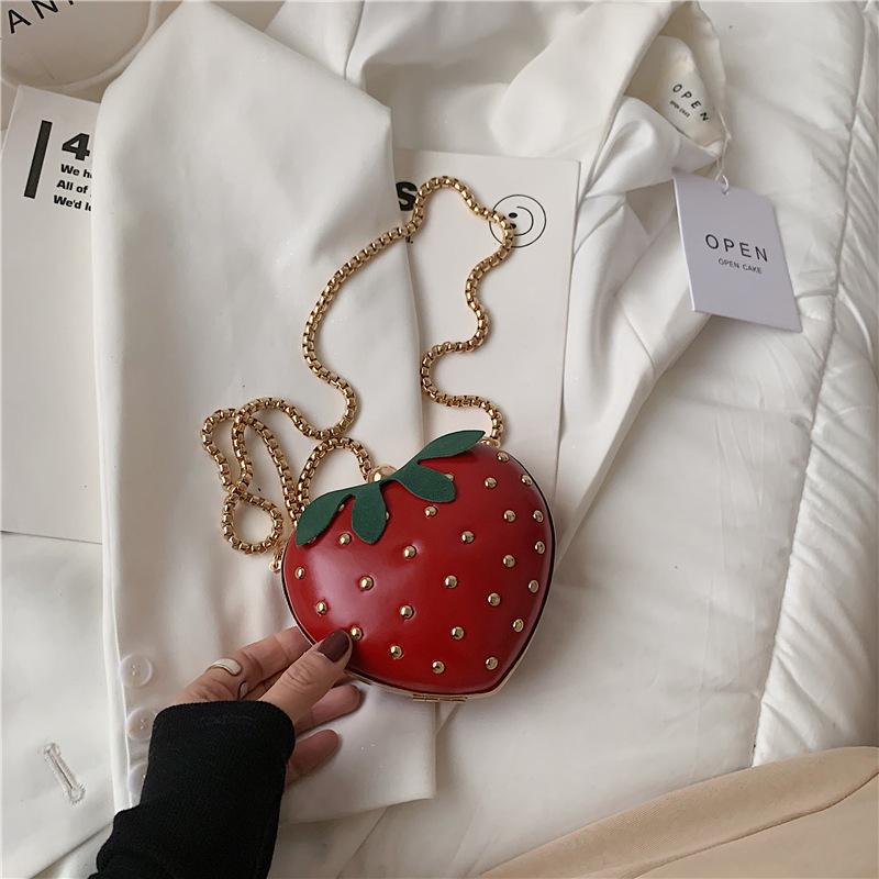 2024 летняя мода милая сумка-клубника маленькая свежая сумка-мессенджер сумка ивовый гвоздь змея кость цепочка женская Length 14 * Width 6 * Height 12 красный
