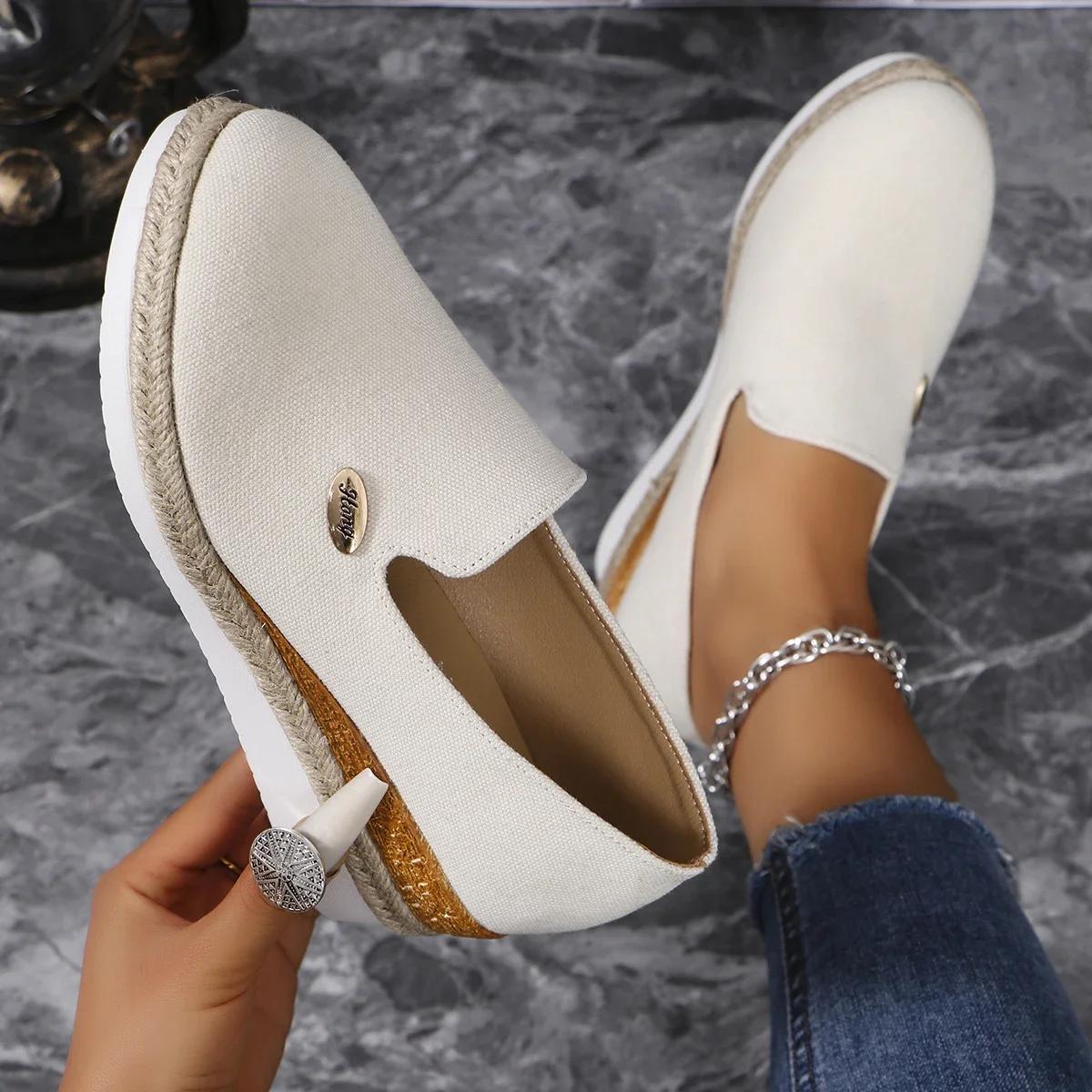 2024 массивные женские туфли на плоской платформе, повседневные туфли, однотонные дышащие эспадрильи на танкетке, женские туфли-лодочки 36 бежевый
