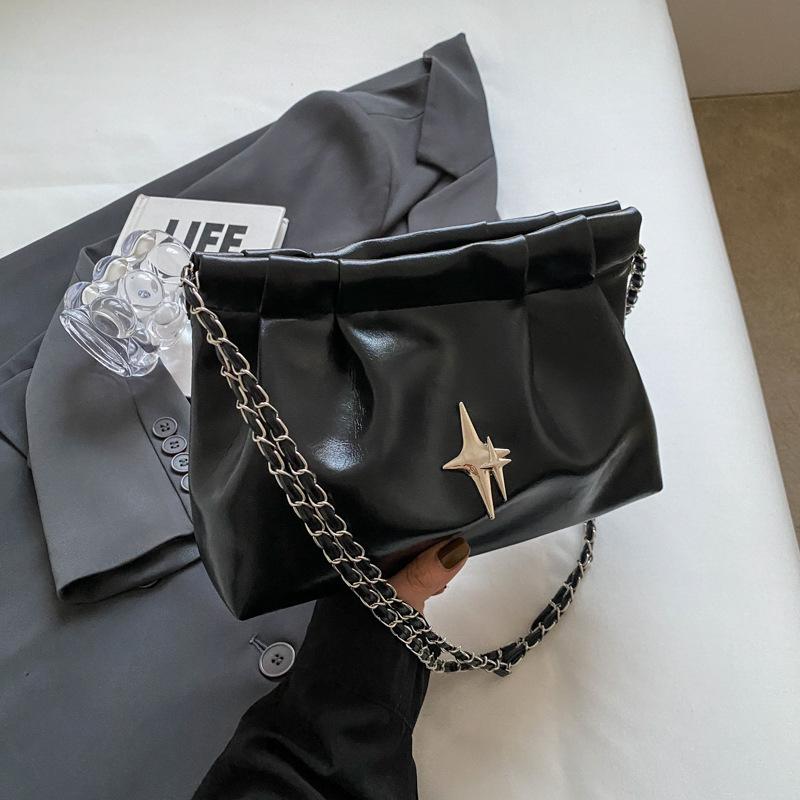 2024 новая повседневная простая однотонная маленькая квадратная сумка большой вместимости цепочка текстура трендовая морщинистая сумка-мессенджер на одно плечо прилив чёрный
