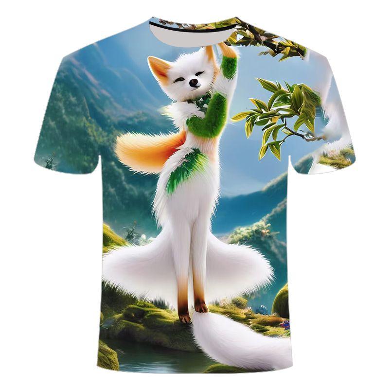 2024 новейшая летняя модель с рисунком лисы и пейзажем, напечатанная на 3D-принте, с короткими рукавами, модная, милая и универсальная для студентов 6XL