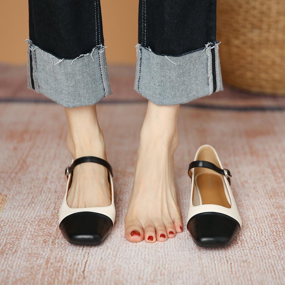 2024 новые дизайнерские туфли Мэри Джейн для женщин балетки из золотой кожи в стиле пэчворк с квадратным носком и ремешком на щиколотке женские мокасины 5 чёрный