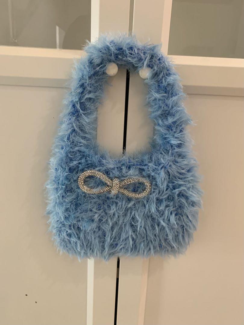 2024 осень и зима симпатичная сумка на одно плечо новая пушистая сумка с бантом для пельменей женская сумка на запястье подмышкой небесно-голубой