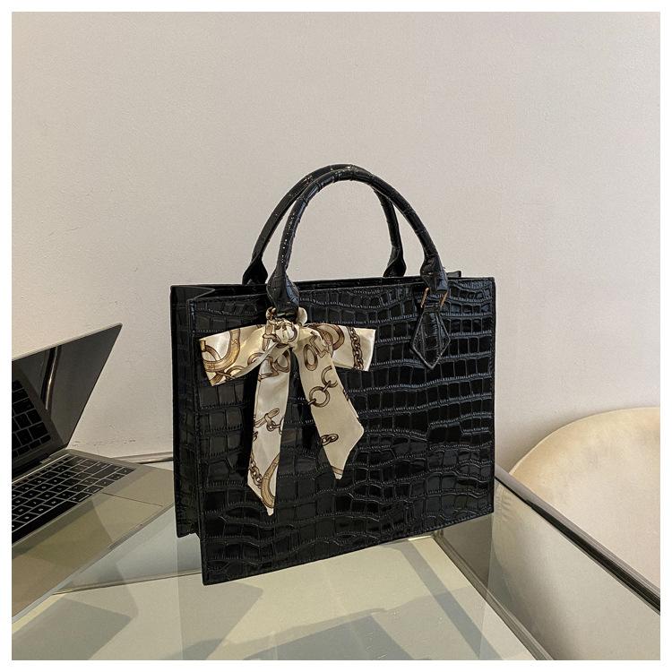 2024 осень новая ретро однотонная переносная квадратная сумка модная сумка с каменным узором простая иностранная сумка через плечо большой вместимости женская сумка чёрный