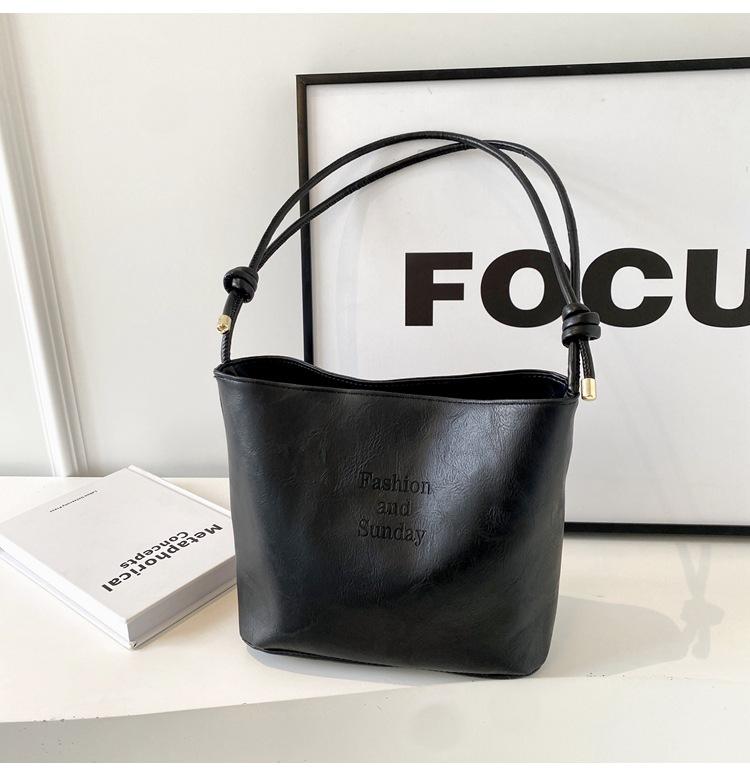 2024 ранняя весна новая простая индивидуальная модная однотонная сумка через плечо большая вместительная сумка-ведро повседневная сумка-мессенджер для поездок на работу чёрный