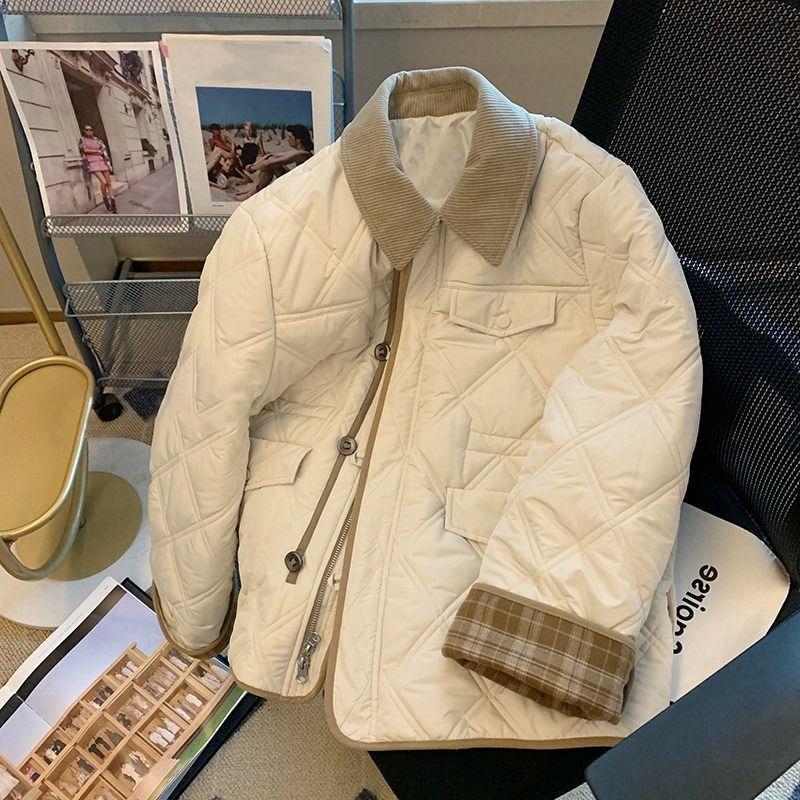 2024 серия модная хлопковая одежда сращивания зимняя порт стиль ретро свободная утолщенная ленивая куртка с подкладкой M абрикосовый
