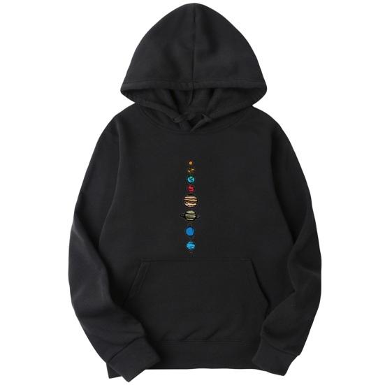 2024 унисекс, осенне-зимняя расписная толстовка, однотонная, с длинными рукавами, модная свободная толстовка большого размера, уличная одежда M чёрный