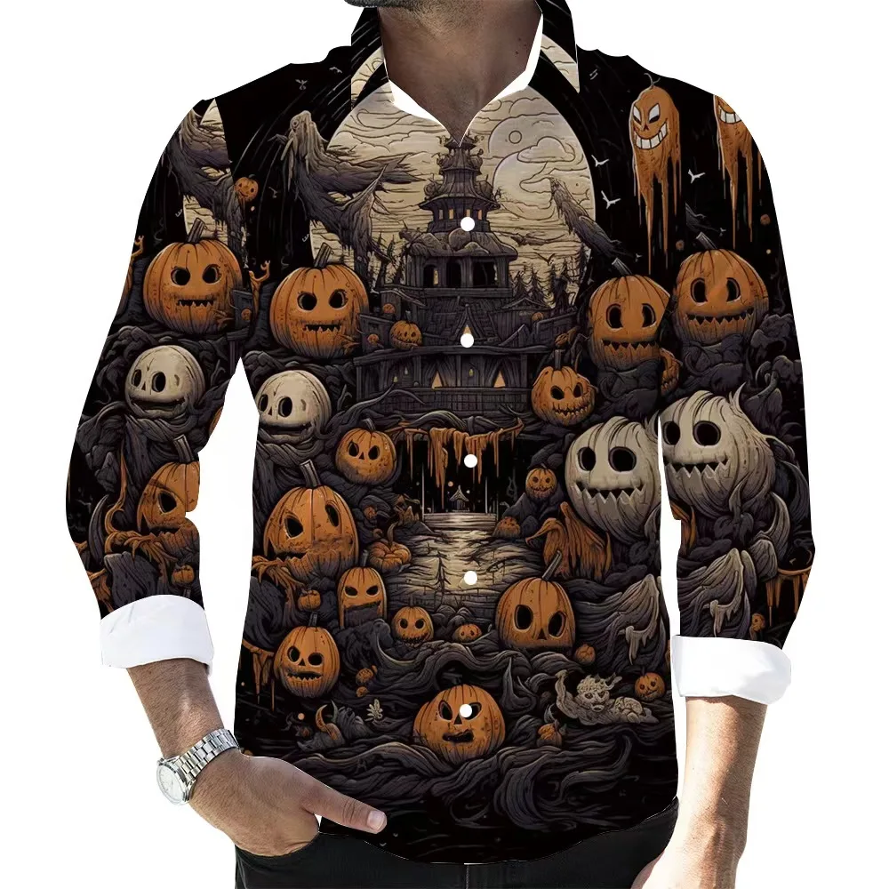 2024 .5 новых моделей мужских модных рубашек для отдыха с принтом на Хэллоуин