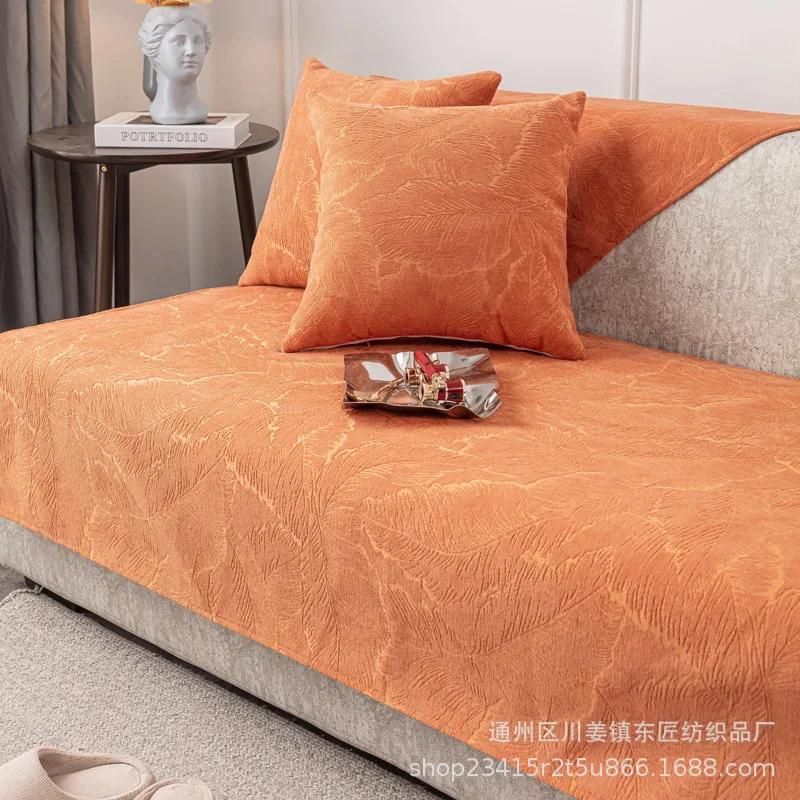 2024 Four Seasons Chenier Универсальная диванная подушка Ткань Простая Современная Нескользящая Подушка Nordic Кожаный Чехол для дивана Полотенце для спинки 70x70cm 1pc оранжевый