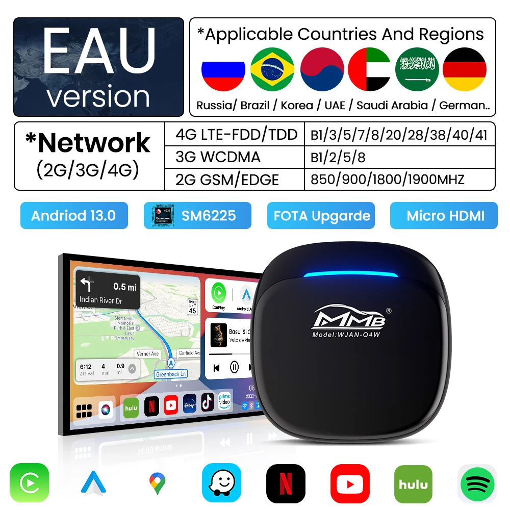 2025 MMB Max 5.0 AI Box Android 13 QCM6225 8-ядерный беспроводной адаптер CarPlay Android Auto с разделенным экраном GPS 8 + 128G YouTube Netflix