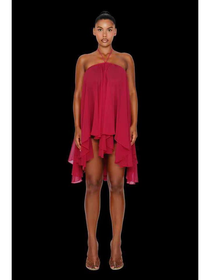 2025 Весна/Лето Сексуальное платье с открытыми плечами, О-образным вырезом, халтер, свободного кроя для женщин Small красный